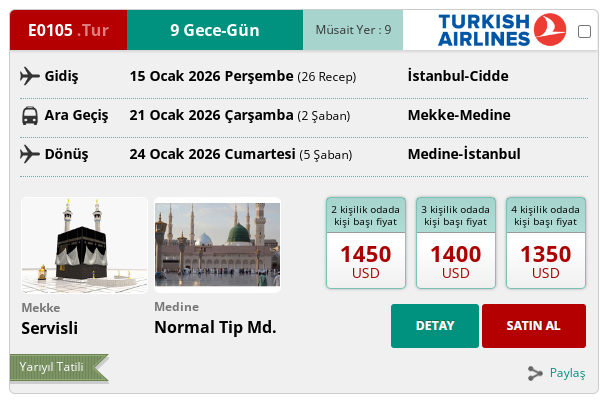 E0105 İK/ UMRE YARIYIL TATİLİ 10 GÜN SERVİSLİ 15 OCAK 2026 GİDİŞ 24 OCAK 2026 DÖNÜŞ